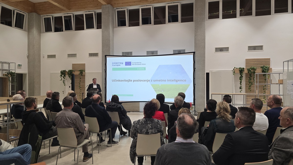 Sledilo je strokovno predavanje Učinkovitejše poslovanje z umetno inteligenco, ki sta ga izvedla Iztok Renčelj in Mitja Jermol, priznana strokovnjaka na področju digitalne preobrazbe in umetne inteligence. Predavatelja sta predstavila aktualne trende, konkretne primere uvedbe AI-orodij v podjetja ter opozorila na priložnosti, ki jih napredne tehnologije prinašajo malim in srednjim podjetjem.